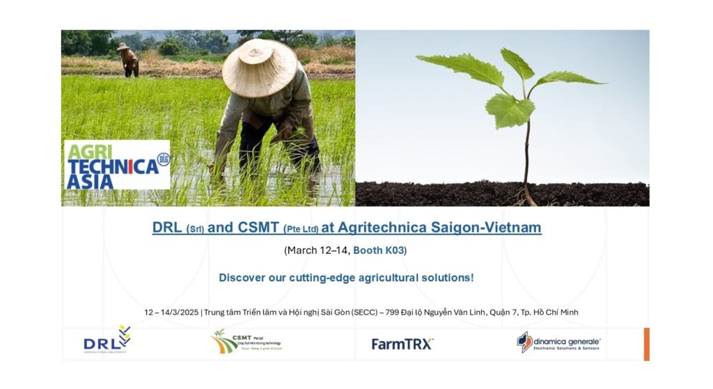 DRL srl, with decades of expertise in agricultural mechanization, and CSMT, a leader in cutting-edge farming technologies (yield/moisture sensors, portable NIR), invite you to Agritechnica Saigon (March 12–14, Booth K03). Discover how we’re shaping the future of agriculture!