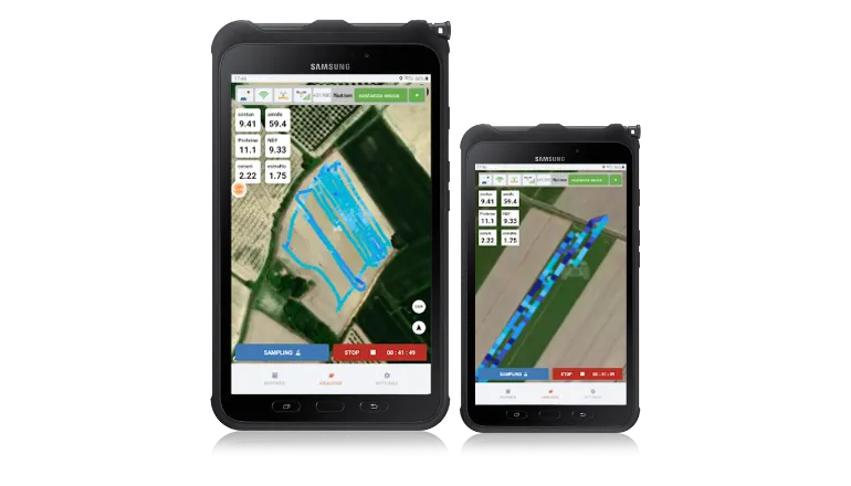 FIELD track collects and displays crop quality data in real time, enabling operators to monitor field performance during harvesting operations.